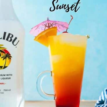 The Malibu Sunset is a deliciously tropical layered drink with brilliant sunset colors! It’s easy to make and the effect is stunning.