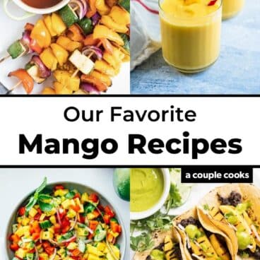 At the top of our list of mango recipes: salsa! Mango salsa is a revelation: it's sweet, savory, and spicy all at once. It's endlessly customizable: scoop it up with tortilla chips, or sprinkle it onto grilled fish. Every time we make it for guests, everyone gathers around the bowl. If you're going to make a mango recipe: this one is our top pick.