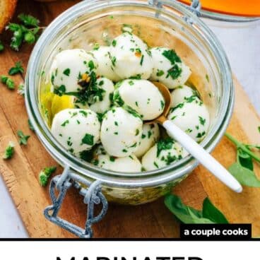 Marinated mozzarella balls are an easy appetizer that take just minutes of hands-on time! Serve as an antipasto or on a cheese board.
