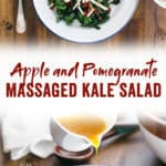 A few timer saver tips for integrating this massaged kale salad into a meal: you can chop the kale in advance and massage before serving. In some grocery stores, you can also find seeded pomegranate, which can help with the prep time. And of course, you can whisk up the dressing in advance and refrigerate: just bring it to room temperature before serving.