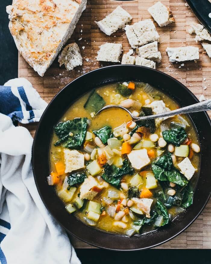 This ribollita recipe is a hearty Tuscan vegetable stew, loaded with veggies and thickened with bread. A flavor-packed Mediterranen dinner idea!