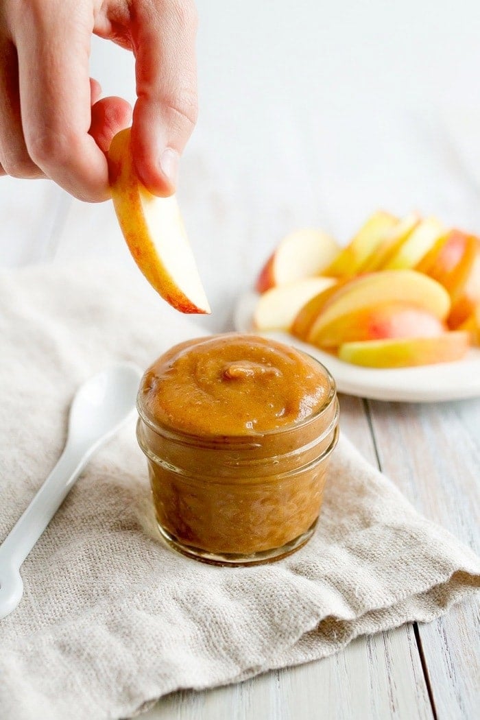 This 4-ingredient date caramel is made with all real foods and tastes salty sweet! It's perfect for dipping apples or other fruit, and it's simple to whip up with just dates, vanilla, salt and almond milk. via Eating Bird Food