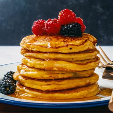 This spin on my classic pancake recipe combines all-purpose and whole wheat flour for a hearty, developed flavor and fluffy texture. Here’s what you’ll need: