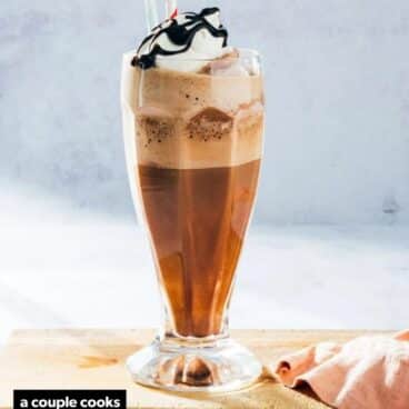 Want to make a vegan or dairy free mocha frappe? It’s easy: just use oat milk instead of dairy milk! Oat milk is our ideal for coffee drinks because of its creamy texture and neutral flavor. We much prefer it to something like almond milk or soy milk. But feel free to use whatever non-dairy milk you prefer.