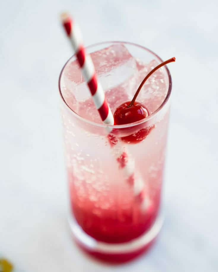 Ingredients: Grenadine, lime juice, ginger ale or ginger beer