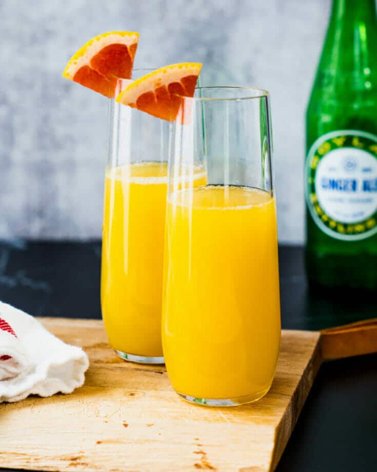 Here’s a great mocktail trick that works for people of all ages: the Non Alcoholic Mimosa! This drink is so simple to put together, and it’s totally customizable for kids or people avoiding alcohol. You can make this virgin drink at the same time as the classic Mimosa, and it works for a crowd! It tastes surprisingly balanced: citrusy and bubbly with a hint of ginger on the finish.