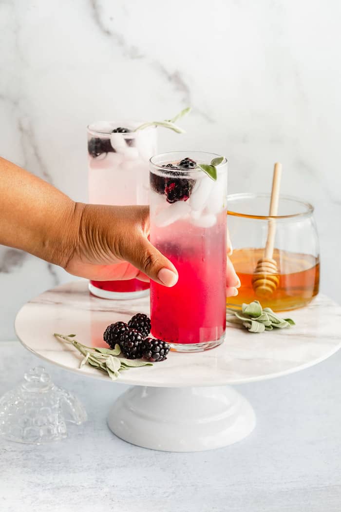 This Honey, Blackberry and Sage refresher taste sweet, tart and woodsy. Each sip of this non-alcoholic pick-me-up is packed with crisp, cool flavor. via Grandbaby Cakes