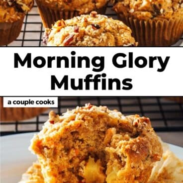 Start your day with Morning Glory muffins! This recipe is packed with goodness: carrots, raisins, nuts, and warm spices.
