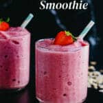 Looking for a fantastic non-dairy milk to use in smoothies? Try oat milk! Oat milk is one of our favorite vegan milk options. It’s seriously creamy and has the closest flavor to milk as any of the other plant-based milks (in our opinion). So what not try it in an Oat Milk Smoothie? This smoothie recipe is our favorite template and works using any type of frozen fruit. Here we’ve used strawberries: but feel free to get creative! Here’s a bit more about this tasty smoothie recipe.