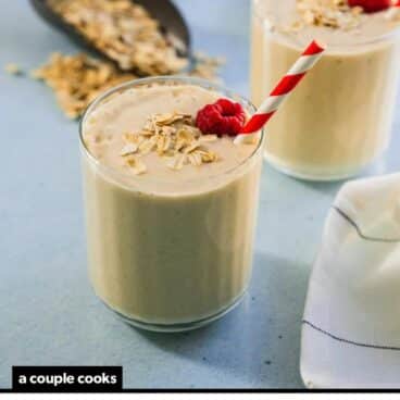 This banana oatmeal smoothie has Greek yogurt to load on protein and healthy probiotics. But want a vegan smoothie? Try it with oat milk instead. Here’s what to do: