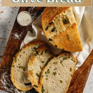This no knead olive bread recipe tastes like it’s from a bakery but it’s so easy to make at home! It has a deliciously crispy crust, soft and chewy interior, and developed, savory flavor. Everyone will be singing its praises (every time we make it, our family can’t stop eating it).