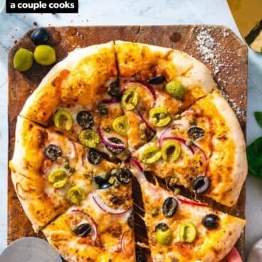 There’s something about the buttery, mild flavor of Castelvetranos that’s unlike any other type. I’ve served these to people who claim not to like olives, only to have them park themselves in front of the bowl! They’re the perfect addition to this olive pizza.