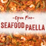 This seafood paella recipe made over an open fire is perfect for entertaining a crowd! It serves eight; pair it with Spanish cheese and sangria.