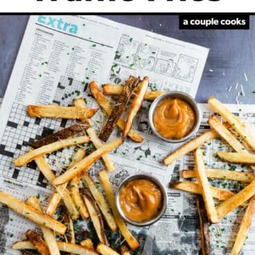 Is the cheese in these Parmesan truffle fries required? Actually, no! You can easily make these truffle fries vegan by simply omitting the Parmesan cheese and adding a bit more salt to taste. You can also add vegan Parmesan cheese; there are lots of great options on the market these days.