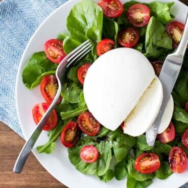 There are so many great ways to use burrata cheese. We love it best in burrata pasta with tomato sauce, or on a gooey burrata pizza. Of course, it’s classic in a burrata salad with peppery arugula. Here are all of our favorite burrata recipes to browse!