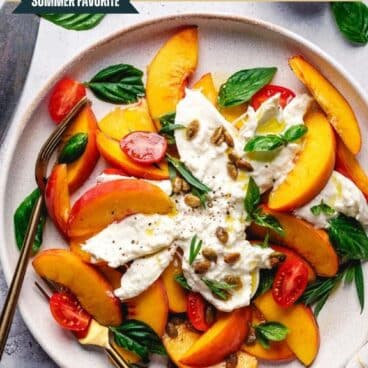 Peach season is glorious, and what better way to enjoy it than a peach burrata salad? Eating sweet, ripe juicy peaches with creamy, rich burrata cheese is one of life’s great pleasures. Top it with fresh basil, olive oil, and balsamic, and each bite will make you melt.