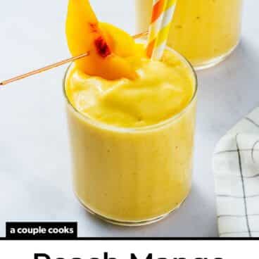 This peach mango smoothie tastes like sunshine! This bright and beautiful puree has a sweet tart flavor and thick, creamy texture.