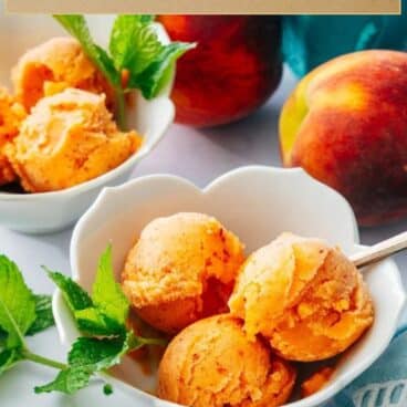 This peach sorbet recipe makes a sweet and creamy frosty puree! It’s easy to whip up this impressive summer dessert.