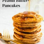 These peanut butter pancakes are fluffy and full of flavor! Top them with bananas, maple syrup, and another slather of peanut butter.