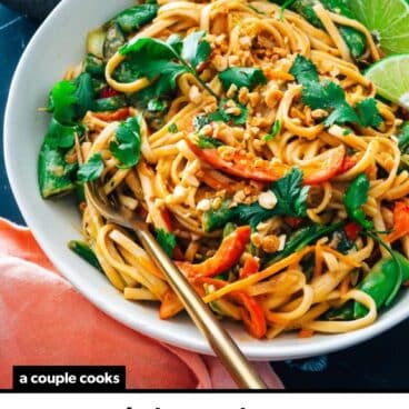 This peanut noodles recipe is an easy dinner recipe that’s ready in under 30 minutes (that also happens to be a vegan dinner!). Here are a few more quick and easy plant-packed dinner recipes you might enjoy: