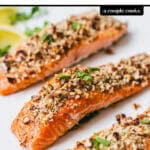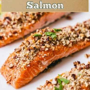 This pecan crusted salmon is fast and easy, with a deliciously crunchy topping! Make it to impress on weeknights or for dinner guests.