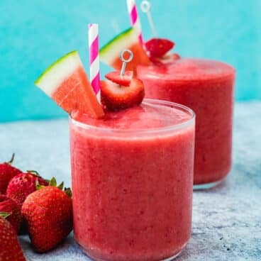 - Strawberry Mango Smoothie: Frozen mango is easy to find at the grocery store. Don’t forget to save a few for a garnish!