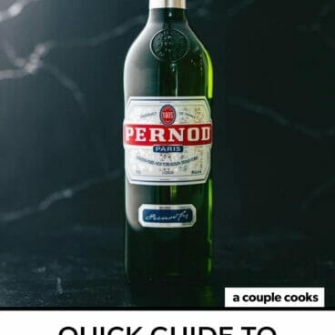Pernod is a pungent, strong anise liqueur that’s extremely refreshing to drink with water, as the French do (also called a Pastis). It tastes like black licorice, so I don’t recommend it if you’re not a fan of black jelly beans!