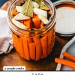 This pickled carrots recipe is for quick pickles, otherwise known as refrigerator pickles. This means you don’t need any canning equipment: the refrigerator will do the hard work. They last 1 month in the refrigerator, so while they’re not shelf stable, you’ll eat through the jar much sooner than that! Here’s how to pickle carrots: