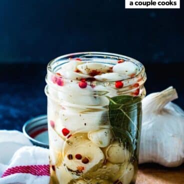 Hello, garlic lovers. Welcome to your dream recipe: Pickled Garlic! Pickling takes this vegetable to a whole new level: it mellows into a sweet, savory and tangy version of itself. It’s got none of the intense bite of the raw version of itself. Pickled garlic works on cheese and charcuterie boards, but it’s so much more than that: use it in vegetable sautés, pasta sauces, grains, and more. Here’s how to make it!