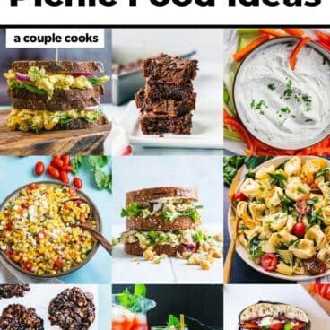Headed on a picnic and need recipe ideas? Here are all the most fun and delicious picnic food ideas! The best foods for picnicking aren’t just tasty: they’re foods that are easy to make ahead, store, and transport to site. You’ll want fresh salads that do well in the refrigerator, and sandwiches that are portable and don’t get soggy. Accessorize with some dips and sweets, and everyone will be singing your praises. Every one of these recipes has been tasted and approved by real people (us!) for use at a picnic.