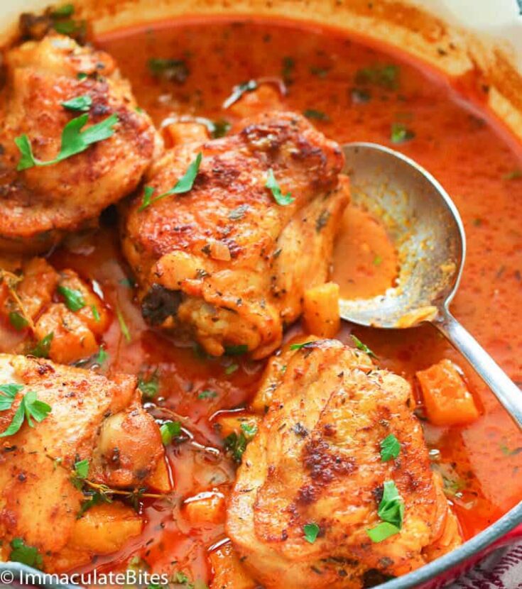 Pineapple is ideal in savory dishes, just as much as with sweets! These chicken thighs are roasted with a glaze of chopped pineapple and pineapple juice, which makes a garlicky, spicy sauce loaded with flavor. via Immaculate Bites