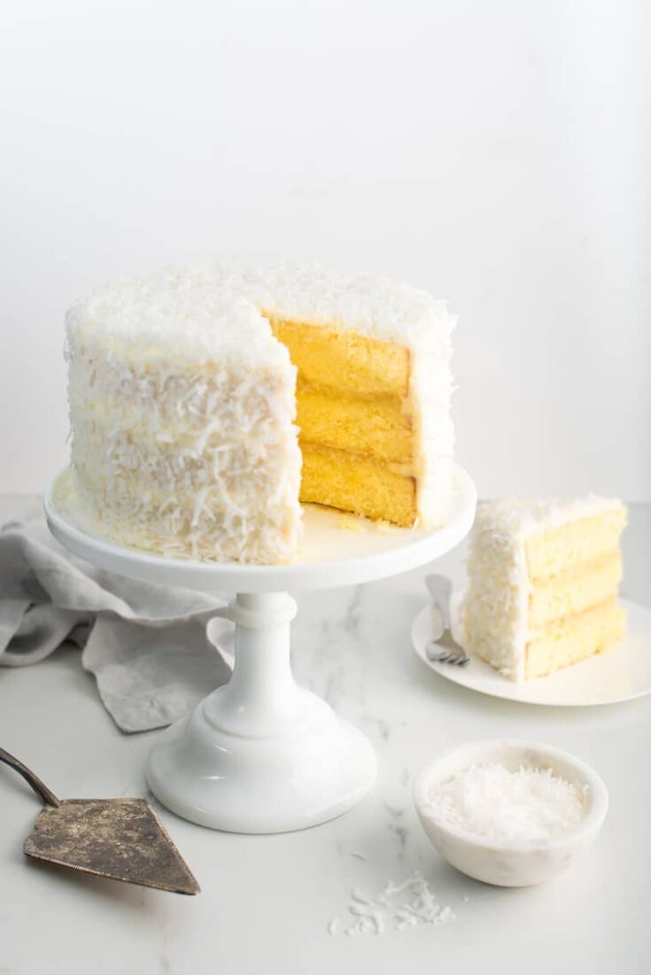 Last up in these pineapple recipes: more cake! This pineapple coconut cake recipe stars canned crushed pineapple. It comes out moist and delicious, with a sweet pineapple filling and a creamy rich coconut buttercream frosting.