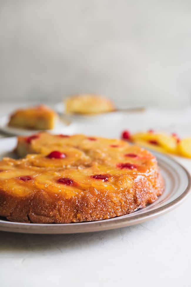One of the most classic pineapple recipes of them all? Pineapple upside down cake! This retro dessert features a moist sponge cake caramelized to perfection, with brown sugar pineapple rings and cherries. via Grandbaby Cakes