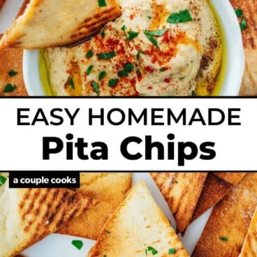 And that’s it! Let us know if you try these pita chips in the comments below. They’re a big hit around here (and perfect with our favorite Hummus Dip).