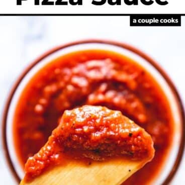 This pizza sauce is one of our most popular recipes on this website: we’ve made it more times than we can count. The garlicky, tangy flavor is incredible and it’s beyond simple to make. Once you try it, you’ll bookmark this recipe for every pizza night!