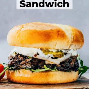 This portobello sandwich stars a mix of roasted portobello mushrooms, crunchy veggies, and creamy horseradish sauce. It’s to die for!