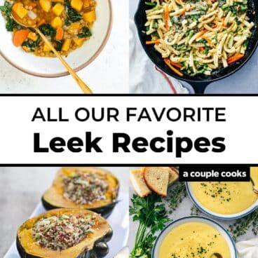 What’s the best way to use use leek greens? Some people say you can use them for vegetable broth, but others say that leek greens have the potential to add bitterness to recipes. Our recommendation? We discard them and add them to our compost pile: they’re great for compost! If you’re wondering how to get started composting, here’s our Composting 101 tutorial.
