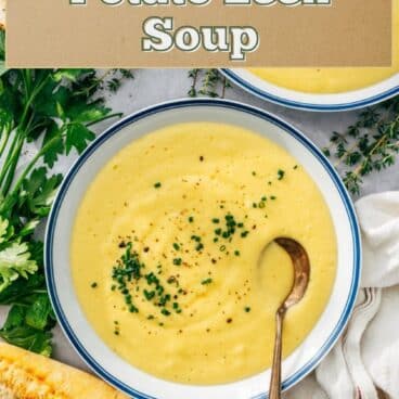This potato leek soup recipe is classic and lusciously creamy! Cozy up to a bowl of this simple fall favorite.