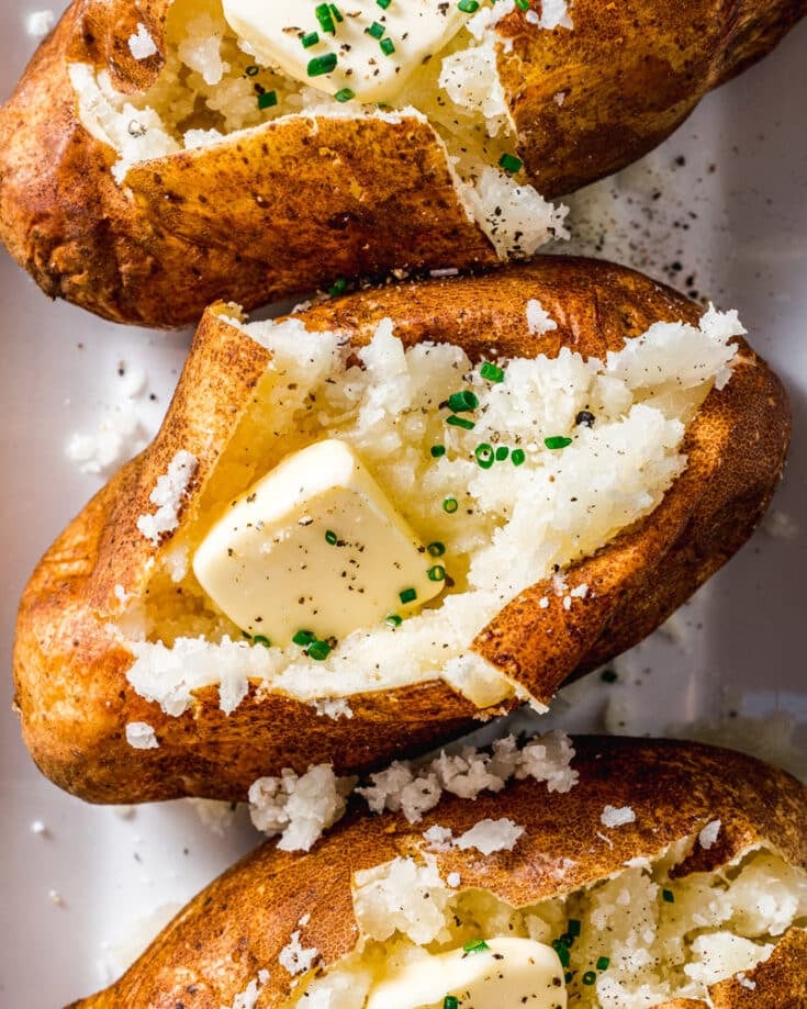 When it comes to side dishes, there’s nothing quite like the good old baked potato. Heck, it works as an easy dinner idea, too! Load it up with toppings and you’ve got a filling dinner. Here’s how to bake a potato in the oven so it comes out crispy on the outside, fluffy on the inside. We've also got a time-saving trick!