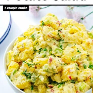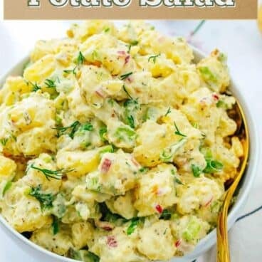 There are so many ways to make potato salad: German or French style with a tangy vinaigrette, loaded with fresh herbs, or even tossed with green beans. We love them all, but one the type that we end up craving every summer is that classic American potato salad recipe!