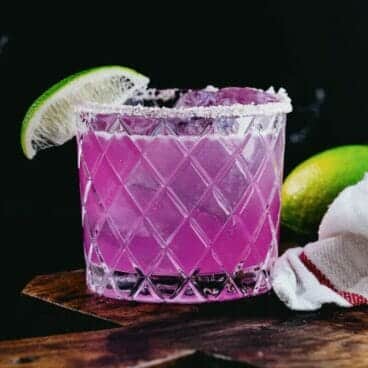 Add them together and stir. Then pour into glasses and serve! We’re 99% sure your guests will be over the moon about the color and flavor of these margaritas. We were, at least!