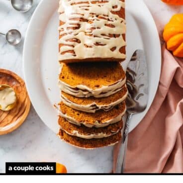 This one comes out cozy-spiced, tender, and moist, with a texture not too fluffy or too dense. It’s simple to whip up: one bowl, no special equipment; just dump and stir! Top it with a sweet maple glaze to take it over the top. It’s the quick bread to make in fall!
