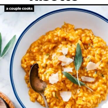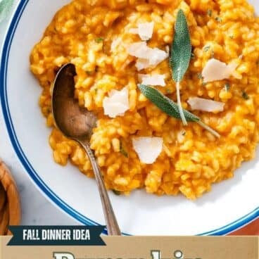 This pumpkin risotto is a satisfying meal for the season! Cook it up with sage and Parmesan and it’s a cozy fall dinner or side dish.