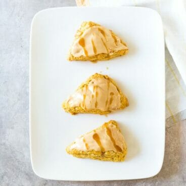 These pumpkin scones with maple glaze are fluffy, lightly spiced, and the perfect way to celebrate fall. Pumpkin spice fans unite!