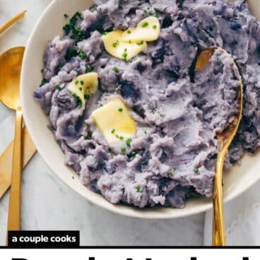 These purple mashed potatoes are creamy and flavorful! Made with garlic and butter, they’re the ideal way to use this vibrant vegetable.