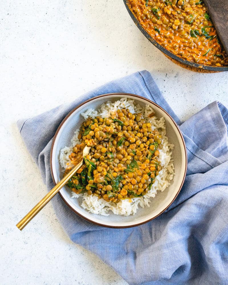 This coconut lentil curry is a fast and easy dinner idea that’s both healthy and full of flavor. It’s perfect for weeknight meals! Over the years, it’s become a fan favorite recipe that’s highly-rated by readers.