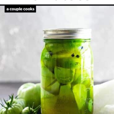 This pickled green tomatoes recipe makes tangy, crunchy refrigerator pickles with no canning equipment! They’re ready in just 24 hours and make the perfect condiment for burgers, salads, and more.