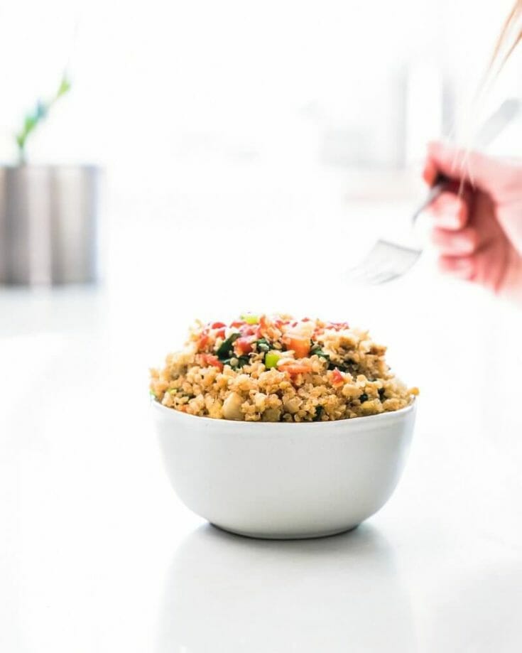 Whether you’re a lover or a hater, one thing is true. Quinoa right out of the pot is pretty bland. You’ve got to have a few tricks up your sleeve to make it taste amazing. Here’s our best quinoa recipe to make it into a perfectly seasoned side dish. Just a few simple ingredients transform it from bland to bursting with flavor! Even quinoa haters will will want to take another bite…promise.