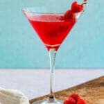 This raspberry martini is a vibrant red cocktail full of berry flavor! Treat yourself with this beautiful sweet drink.