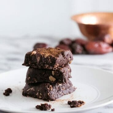 These raw brownies are impossibly fudgy and chocolatey! Made simply with walnuts, dates, and cocoa powder, they’re a deliciously healthy no-bake dessert ready in minutes.